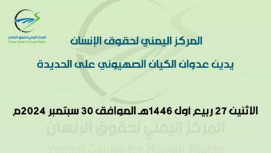 ويدعو المركز اليمني كافة الأحرار والشخصيات الاجتماعية والاعتبارية في المحافظات المحتلة والمنظمات المحلية والدولية لإدانة هذه الممارسات والجرائم التي تمس العرض والشرف والكرامة للمواطن اليمني.