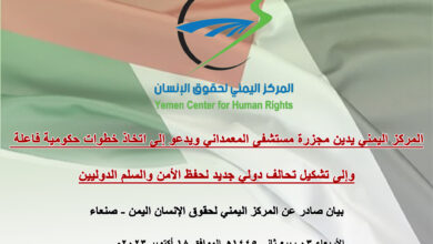 يدين المركز اليمني لحقوق الإنسان ما قامت به الميلشيات المسلحة التابعة لدول تحالف العدوان ليل الثلاثاء 3 أكتوبر 2023 من…