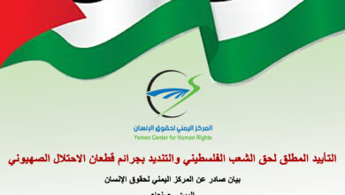يجدد المركز اليمني لحقوق الإنسان إدانته لاستمرار عدوان الكيان الصهيوني على قطاع غزة وإصراره على قتل وتهجير سكانه سعياً لتوسيع…