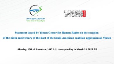 Statement issued by Yemen Center for Human Rights on the occasion of the ninth anniversary of the start of the Saudi-American coalition aggression on Yemen